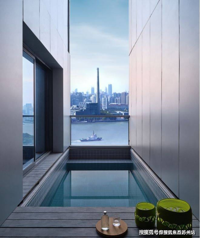 不仅如此,世博天悦突破了传统的户型设计,在中间套14m的瞰江面基础上,开创性的增加了约4米的进深采光面,利用中间套的双层挑高,打造室内上海滨江首个空中泳池户型,在习习江风之上,独享浦江两岸的点点星辉。